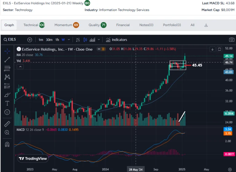 ExlService Holdings (EXLS) has broken out from a 10-week consolidation pattern, supported by increasing trading volume. Buy Order…